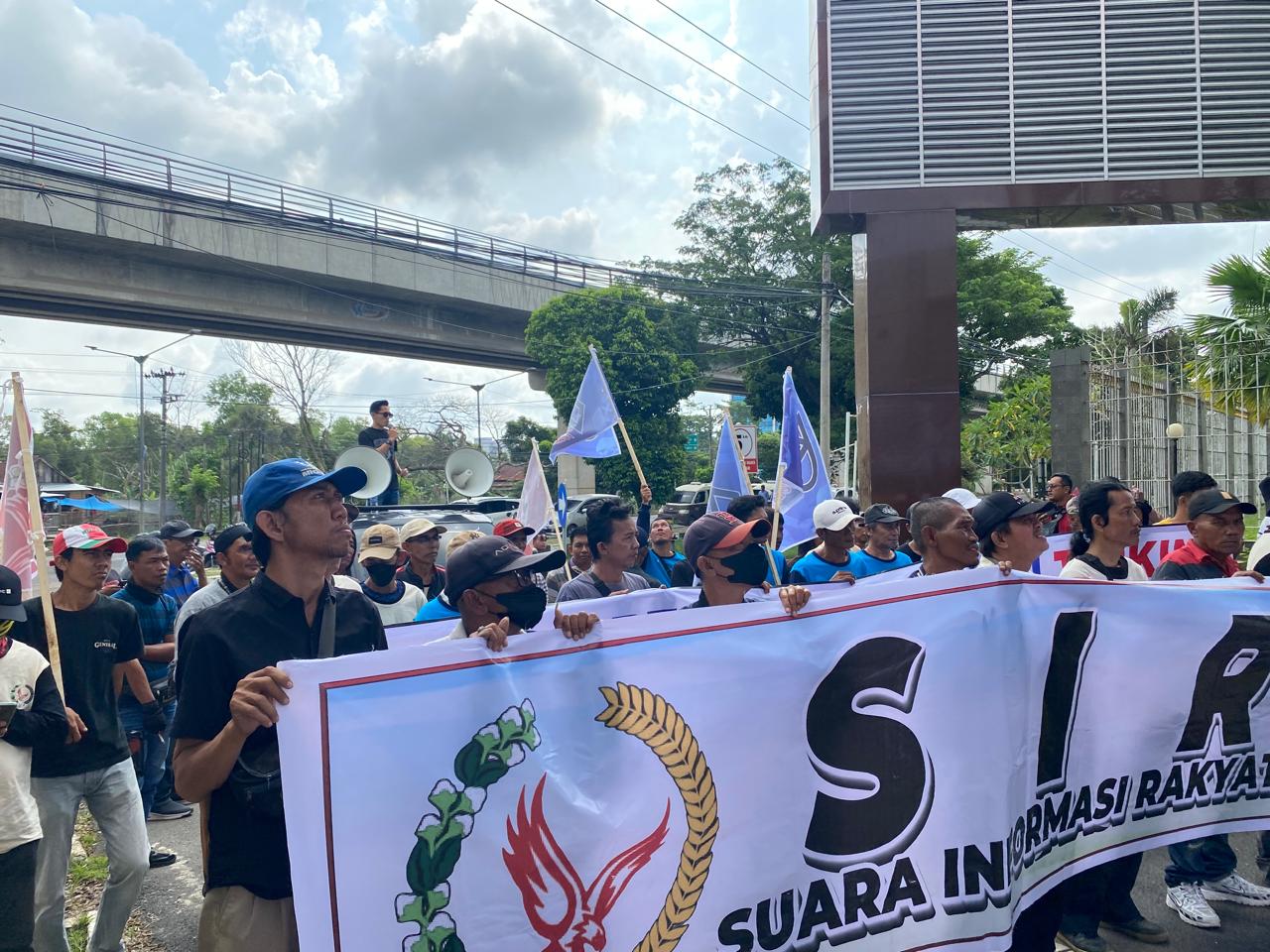 Dengan membawa spanduk dan pernyataan sikap, massa mendesak aparat penegak hukum mengusut tuntas penggunaan anggaran DAK senilai Rp45,41 miliar.