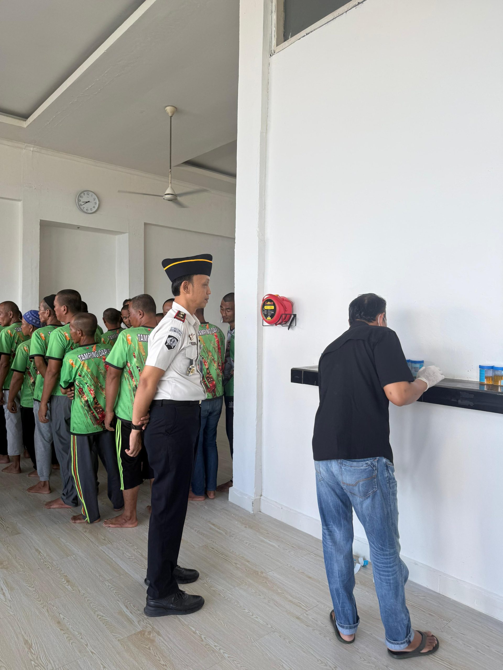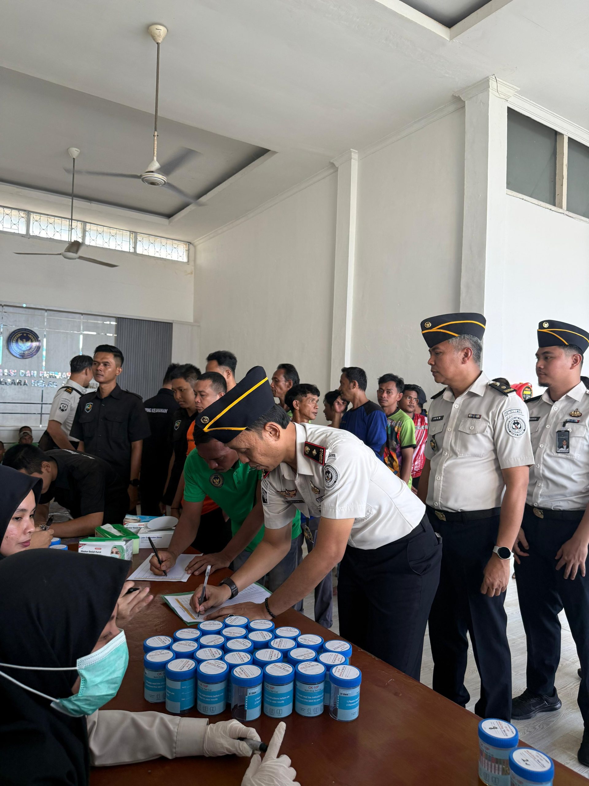 Usai pelaksanaan apel, kegiatan dilanjutkan dengan tes urine bagi pegawai dan warga binaan. Tes ini dilaksanakan sebagai langkah deteksi dini serta pencegahan terhadap penyalahgunaan narkotika di lingkungan rutan. Pelaksanaan tes urine berjalan tertib, transparan, dan diawasi langsung oleh petugas yang berwenang.