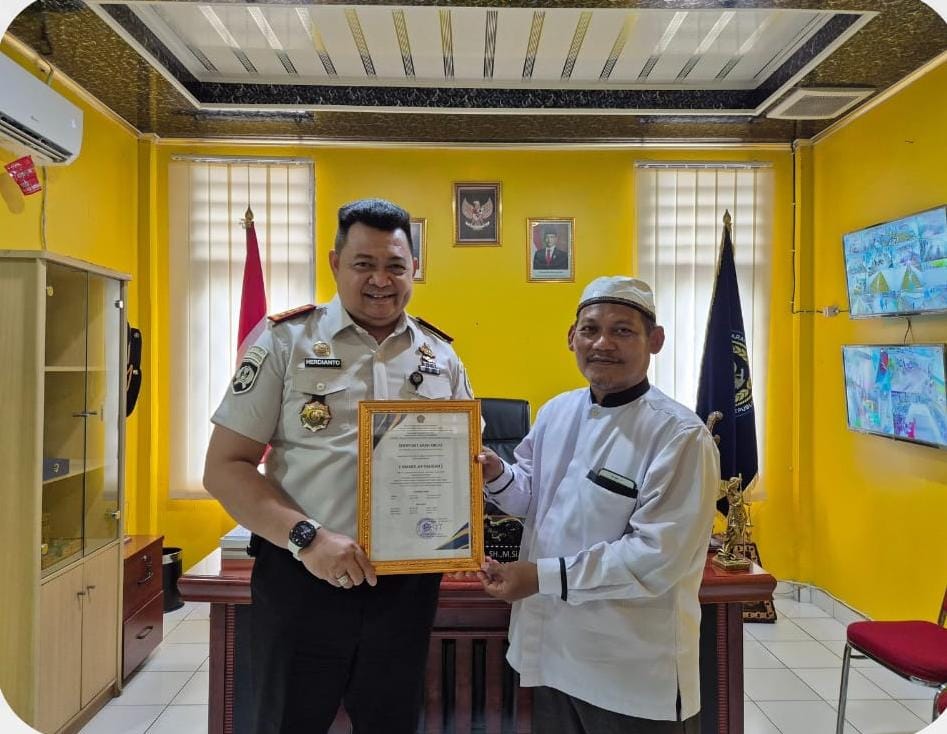 Penghargaan tersebut diterima langsung oleh Kepala Lapas Narkotika Kelas IIA Muara Beliti, Herdianto, sebagai bentuk pengakuan atas ketepatan arah kiblat masjid yang telah terverifikasi secara resmi.