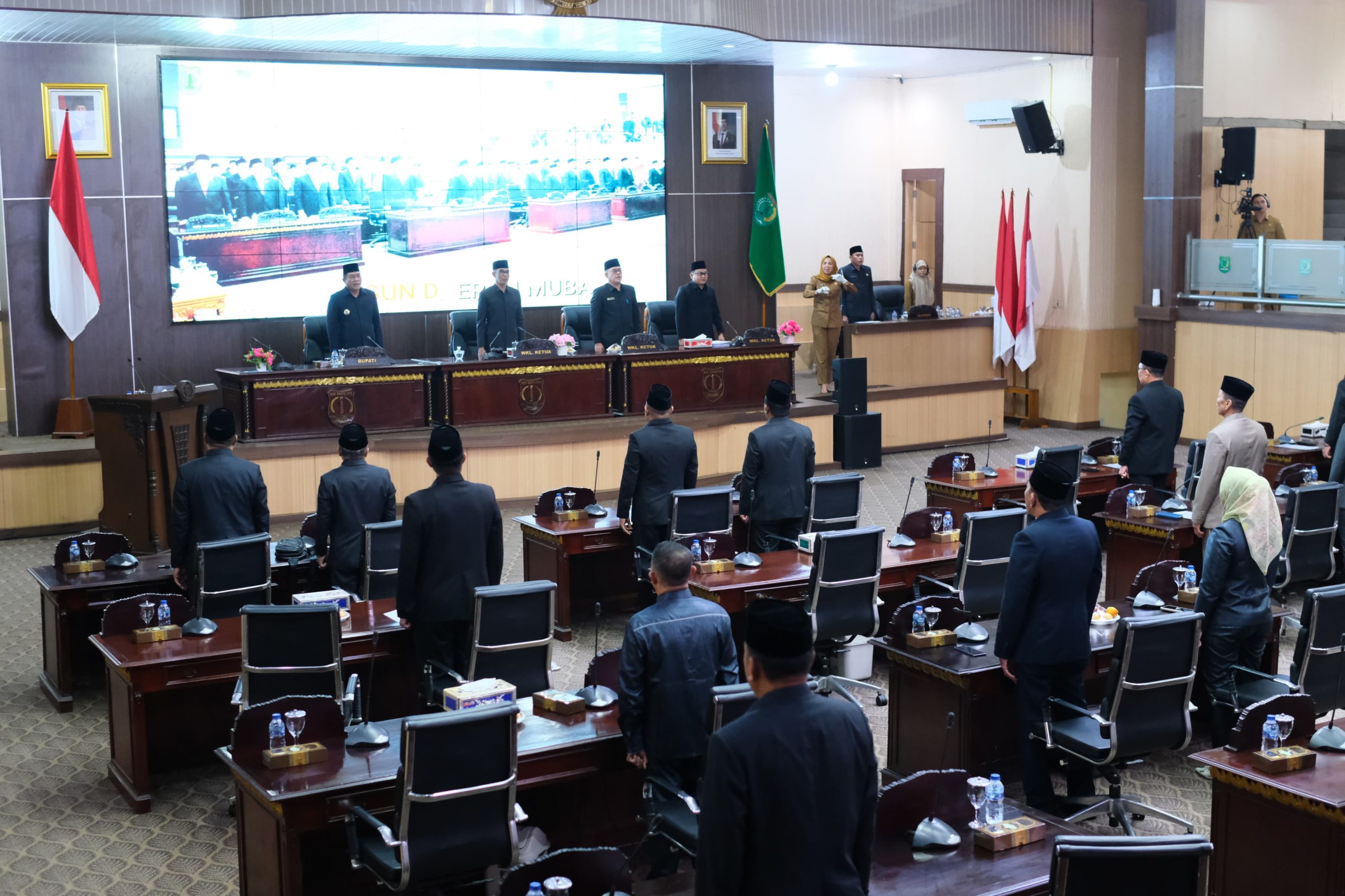 Rapat dipimpin Wakil Ketua I DPRD Muba Irwin Zulyani dan dihadiri para pimpinan dan anggota DPRD, unsur Forkopimda, para asisten, staf ahli bupati, kepala perangkat daerah, serta tokoh agama dan tokoh masyarakat.