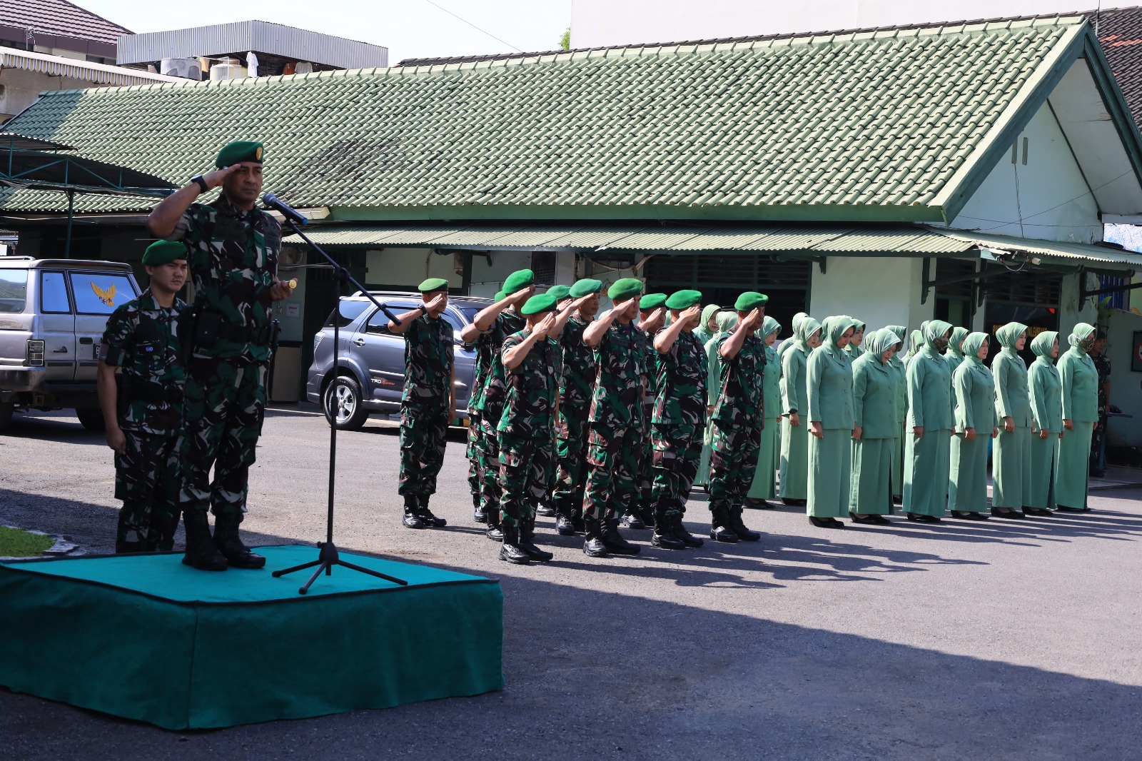 INDODAILY.CO, PALEMBANG – Dandim 0418 Palembang Letkol Czi Arief Hidayat, M.Han pimpin upacara laporan korps kenaikkan pangkat anggota Kodim 0418/Palembang, bertempat di Lapangan Apel Makodim 0418/Palembang, Selasa (4/4/2023).