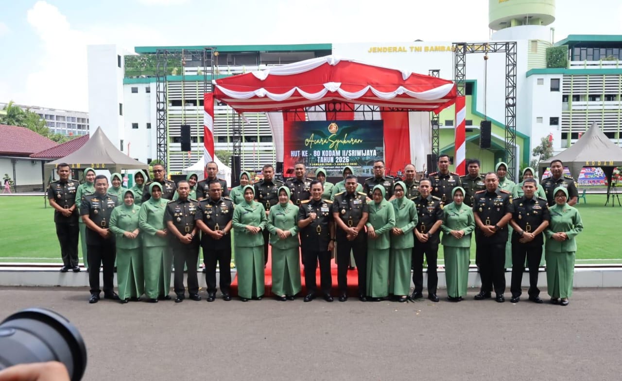 “Momentum HUT Ke-80 Kodam II/Sriwijaya ini harus menjadi semangat bagi kami untuk terus meningkatkan pengabdian, menjaga kemanunggalan TNI dengan rakyat, serta mendukung setiap program TNI AD yang bermuara pada kesejahteraan masyarakat,” ujar Letkol Arh Erik Novianto.