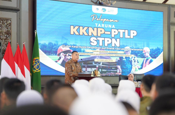 Pelepasan dilakukan oleh Wakil Menteri Agraria dan Tata Ruang/Wakil Kepala Badan Pertanahan Nasional (Wamen ATR/Waka BPN), Ossy Dermawan, bersama total 619 Taruna/i STPN di Pendopo Sasana Widya Bhumi, STPN, Sleman, DIY, Senin (9/2/2026).