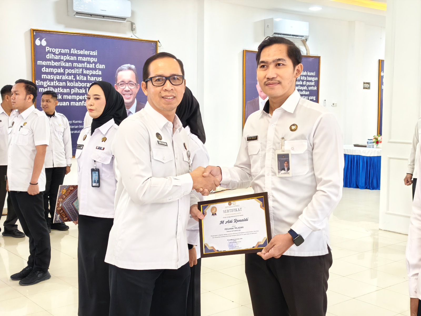 INDODAILY.CO, BANYUASIN — Lembaga Pemasyarakatan (Lapas) Kelas IIA Banyuasin menggelar Apel Kenaikan Pangkat Pegawai Satu Tingkat Lebih Tinggi Periode Desember 2025 sekaligus penyerahan Piagam Pegawai Teladan Periode September dan Oktober 2025, Rabu (10/10/2025), pukul 08.00 WIB. Kegiatan berlangsung di Aula Gedung 2 Lapas Kelas IIA Banyuasin.