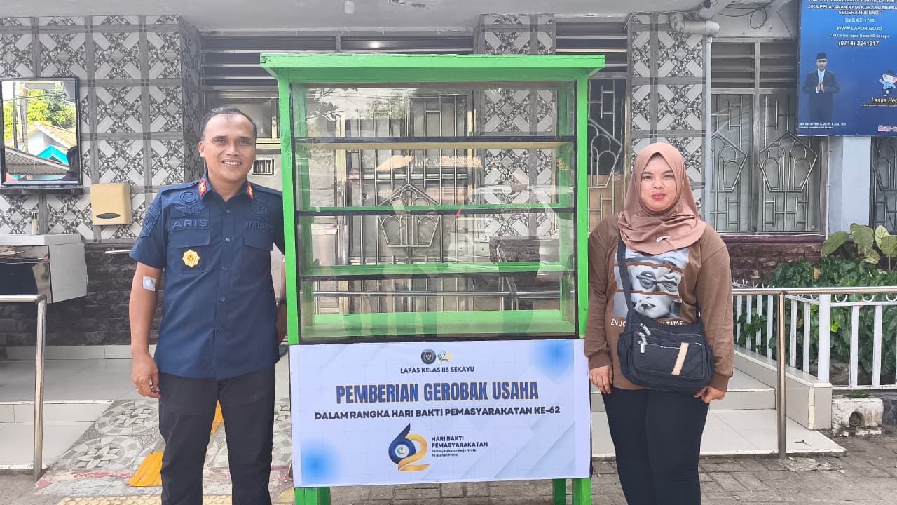 Dalam rangkaian kegiatan peringatan Hari Bakti Pemasyarakatan (HBP) ke-62, Lapas Sekayu menunjukkan kepedulian sosial dengan memberikan bantuan gerobak usaha kepada keluarga warga binaan yang kurang mampu, Jumat (17/04/2026).