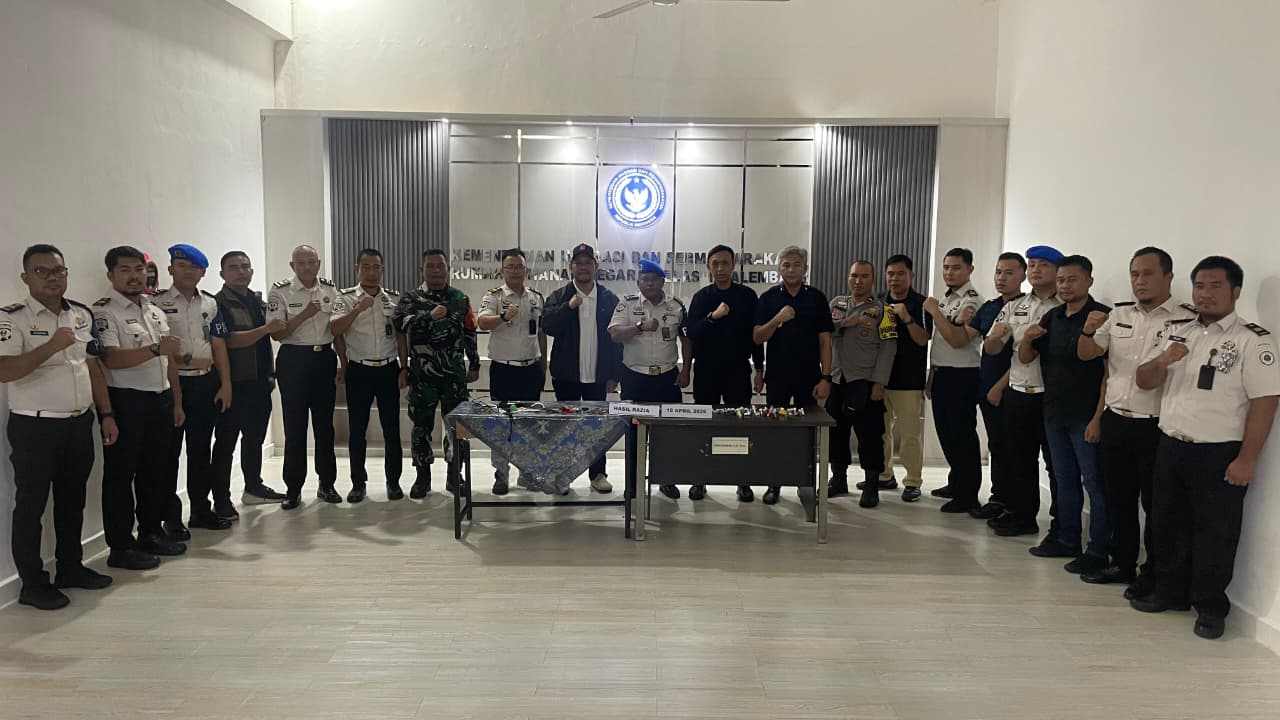 INDODAILY.CO, PALEMBANG – Dalam rangka memperkuat upaya pencegahan dan pemberantasan peredaran narkoba serta kepemilikan handphone ilegal, Rumah Tahanan Negara Kelas I Palembang melaksanakan razia terpadu bersama Tim Pengamanan Internal Kanwil, Satresnarkoba Polrestabes Palembang, unsur TNI melalui Babinsa, serta Polri melalui Bhabinkamtibmas, pada Sabtu (18/04/2026) malam.