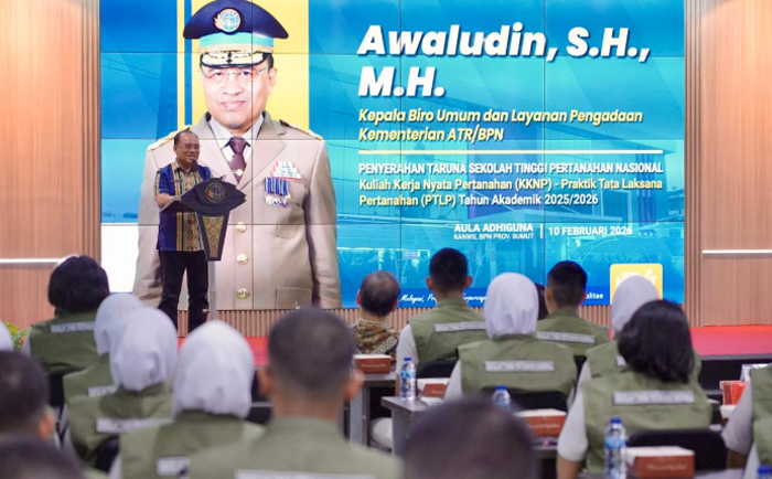 “Ketika kalian membantu merestorasi arsip pascabencana, sejatinya kalian turut menjaga ingatan negara serta memastikan pelayanan pertanahan tetap berjalan tertib, akuntabel, dan berkelanjutan,” ujar Awaludin saat menyambut 30 Taruna/i STPN di Aula Adhiguna, Kantor Wilayah (Kanwil) BPN Provinsi Sumatera Utara, Medan, Selasa (10/2/2026).
