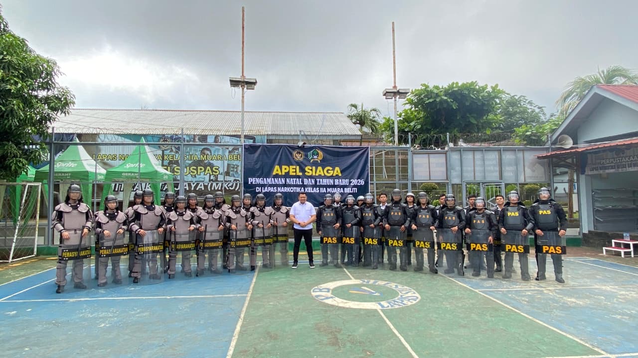 INDODAILY.CO, MUARA BELITI — Dalam rangka memastikan keamanan dan ketertiban menjelang perayaan Natal dan Tahun Baru (Nataru) 2026, Lembaga Pemasyarakatan Narkotika Kelas IIA Muara Beliti menggelar Apel Siaga Pengamanan. Kegiatan tersebut dilaksanakan di halaman utama lapas dan diikuti oleh seluruh jajaran petugas pengamanan, pada Selasa, 16 Desember 2025.