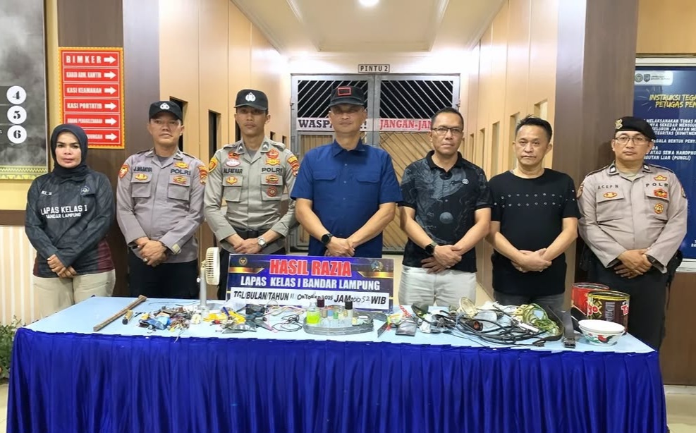 INDODAILY.CO, LAMPUNG — Kepala Kantor Wilayah Direktorat Jenderal Pemasyarakatan (Ditjenpas) Lampung, Jalu Yuswa Panjang, memimpin langsung razia gabungan di blok hunian Lapas Kelas I Bandar Lampung, pada Jumat malam (10/10) pukul 23.45 WIB.