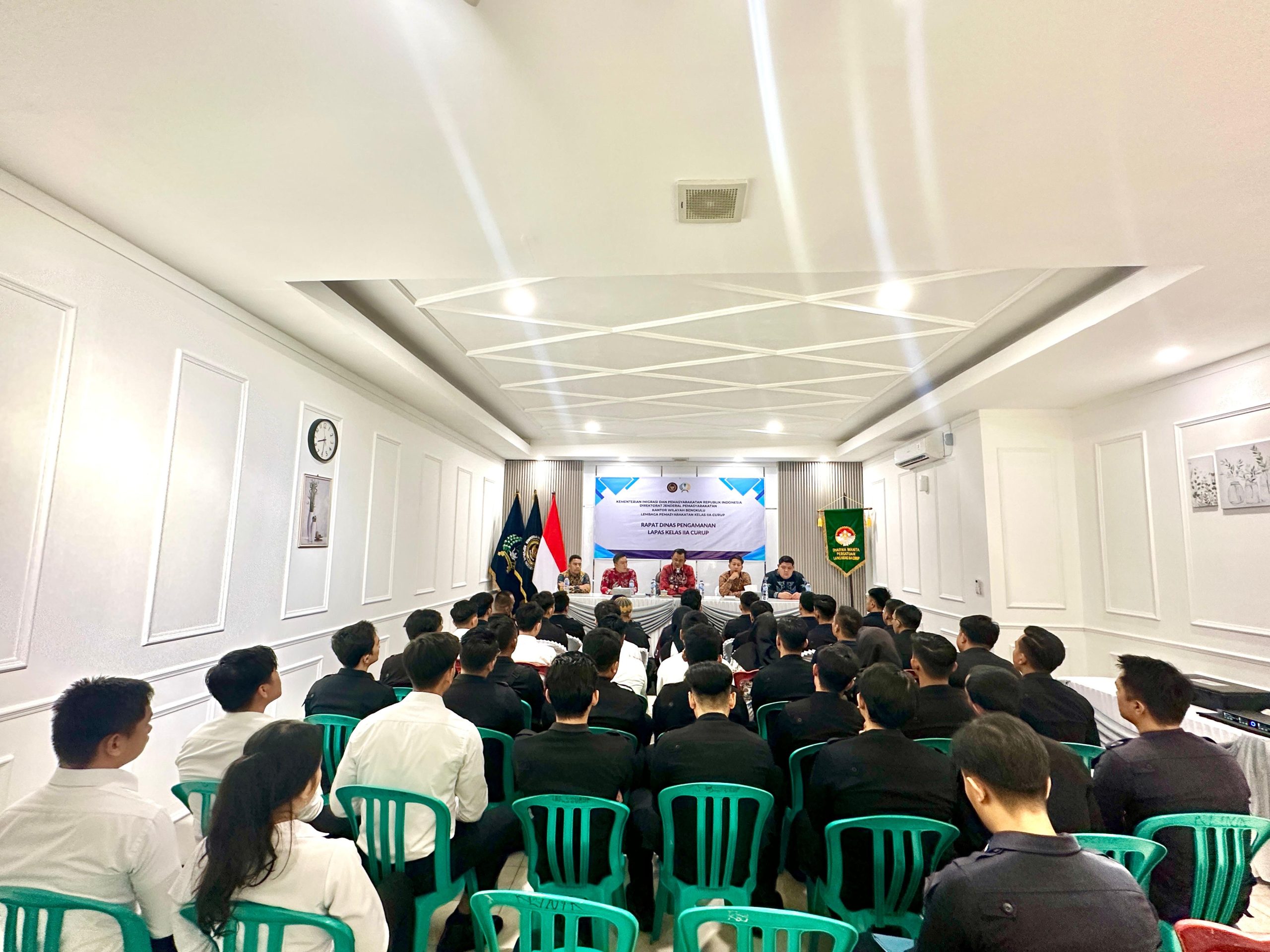 Kegiatan yang berlangsung di Aula Atas Lapas Kelas IIA Curup tersebut bertujuan untuk meningkatkan integritas, kedisiplinan, serta profesionalisme petugas dalam menjalankan tugas pengamanan dan pemeliharaan keamanan dan ketertiban (kamtib) di lingkungan lapas.