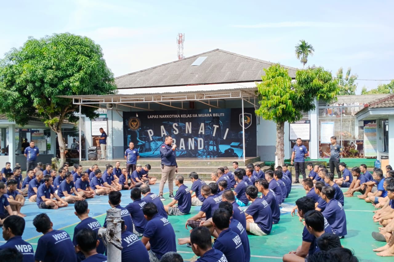 Kepala Lembaga Pemasyarakatan (Lapas) Narkotika Kelas IIA Muara Beliti, Herdianto, memberikan pengarahan dan penguatan rutin kepada seluruh pejabat struktural, pegawai, serta warga binaan pemasyarakatan.