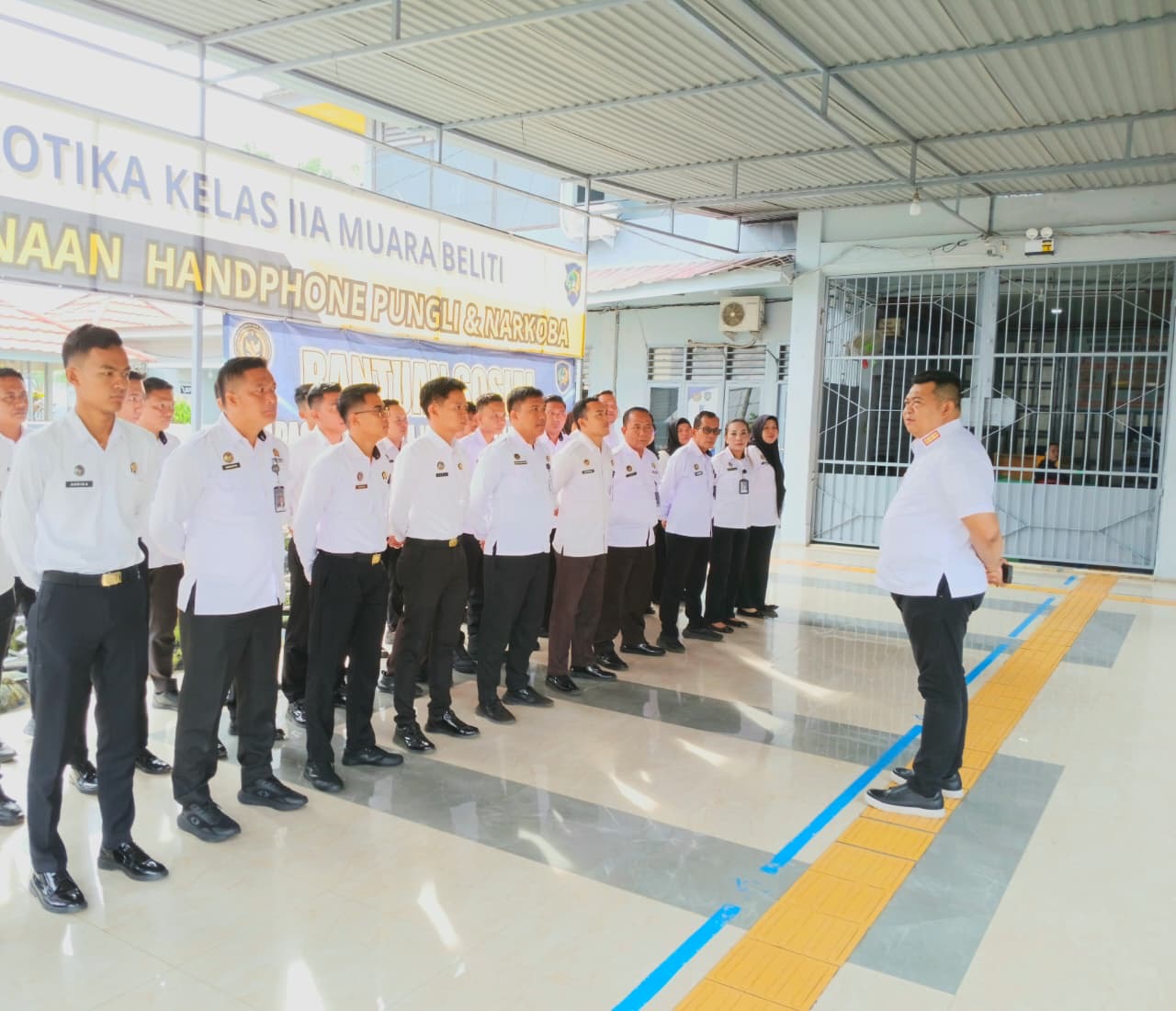 INDODAILY.CO, MUARA BELITI — Lapas Narkotika Kelas IIA Muara Beliti apel pagi rutin yang diikuti oleh seluruh jajaran pegawai, Kegiatan tersebut dipimpin langsung oleh Kepala Lapas Narkotika Muara Beliti.