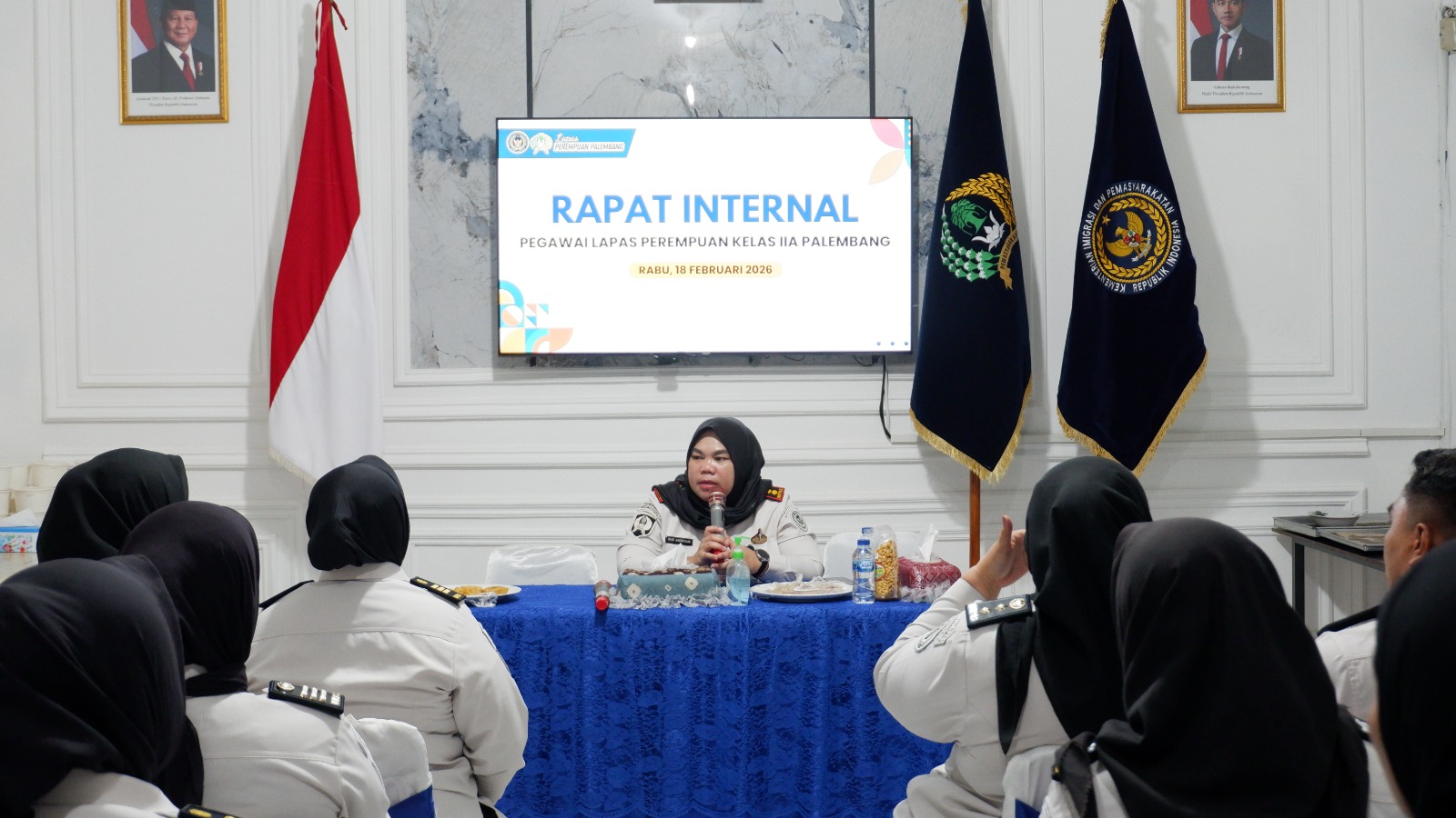 INDODAILY.CO, PALEMBANG, —- Lembaga Pemasyarakatan (Lapas) Perempuan Kelas IIA Palembang menggelar rapat monitoring dan evaluasi (monev) yang diikuti oleh jajaran pejabat struktural dan seluruh pegawai bertempat di Aula Lapas Perempuan Palembang, Rabu (18/2).