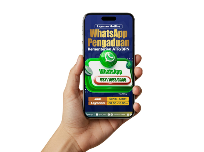 Saat ini, Kementerian ATR/BPN menyediakan empat kanal resmi pengaduan, yakni Hotline WhatsApp Pengaduan di nomor 0811-1068-0000, email resmi melalui su***@*******go.id, loket persuratan untuk pengaduan tertulis beserta dokumen pendukung, serta SP4N-LAPOR! sebagai platform nasional pengelolaan pengaduan masyarakat.