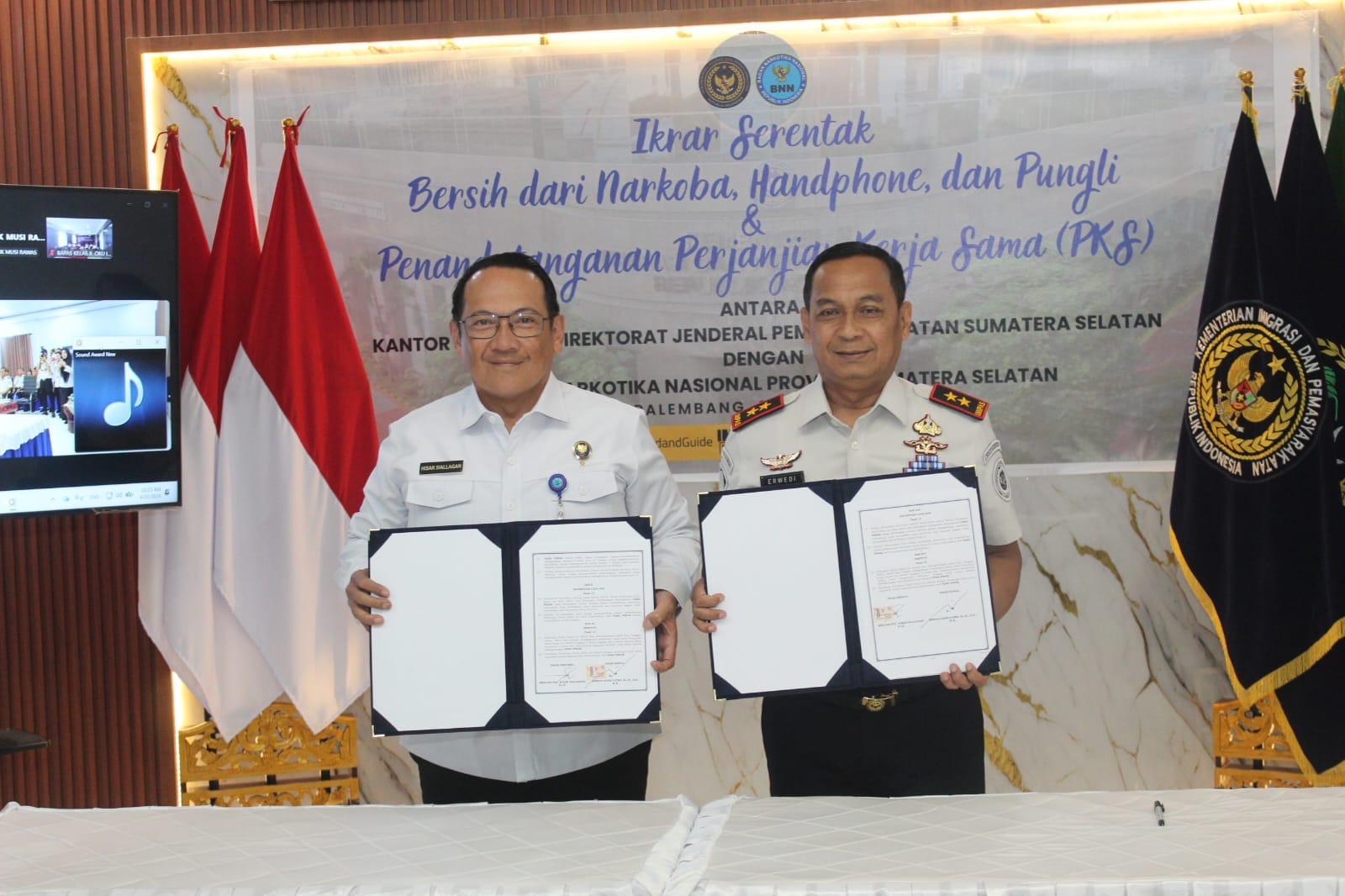 Hal ini diwujudkan melalui penandatanganan Perjanjian Kerja Sama (PKS) antara Kepala Kantor Wilayah Ditjenpas Sumsel, Erwedi Supriyatno, dengan Kepala Badan Narkotika Nasional Provinsi Sumatera Selatan, Brigjen Pol. Hisar Sialagan, yang dilaksanakan di Aula Kanwil Ditjenpas Sumsel.