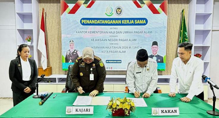 INDODAILY.CO, PAGAR ALAM — Kejaksaan Negeri Pagar Alam resmi menjalin kerja sama dengan Kantor Kementerian Haji dan Umrah Kota Pagar Alam dalam rangka pengawasan dan koordinasi penyelenggaraan Haji 2026 M/1447 Hijriah.
