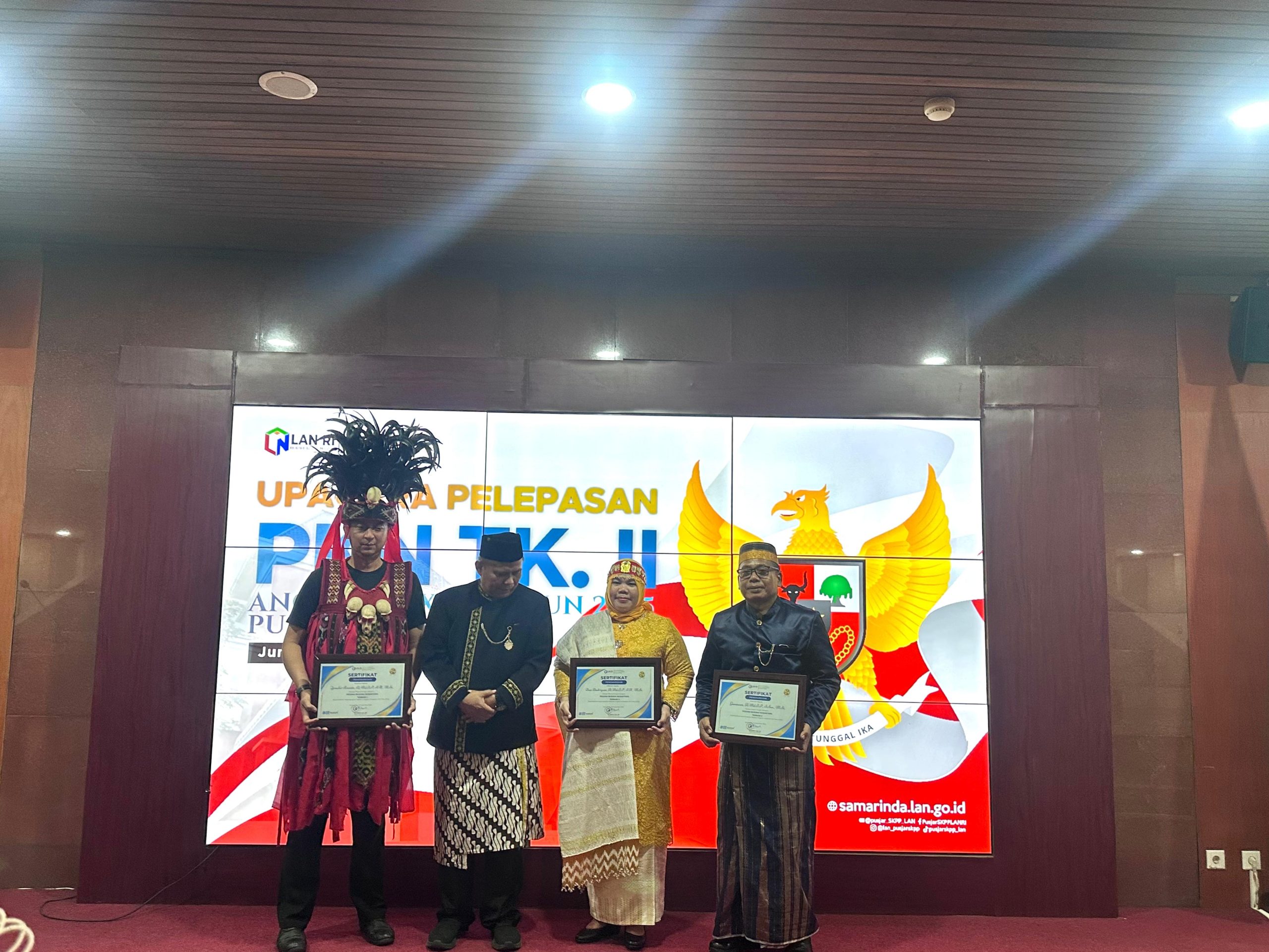Kepala Pusjar SKPP LAN Samarinda, Rahmat, menyampaikan apresiasi yang tinggi atas dedikasi, kreativitas, dan kerja keras seluruh peserta dalam menuntaskan program kepemimpinan strategis ini. PKN II disebut bukan hanya ajang peningkatan kompetensi, tetapi juga wadah untuk melahirkan pemimpin transformatif yang mampu memberikan dampak nyata bagi pembangunan birokrasi modern.