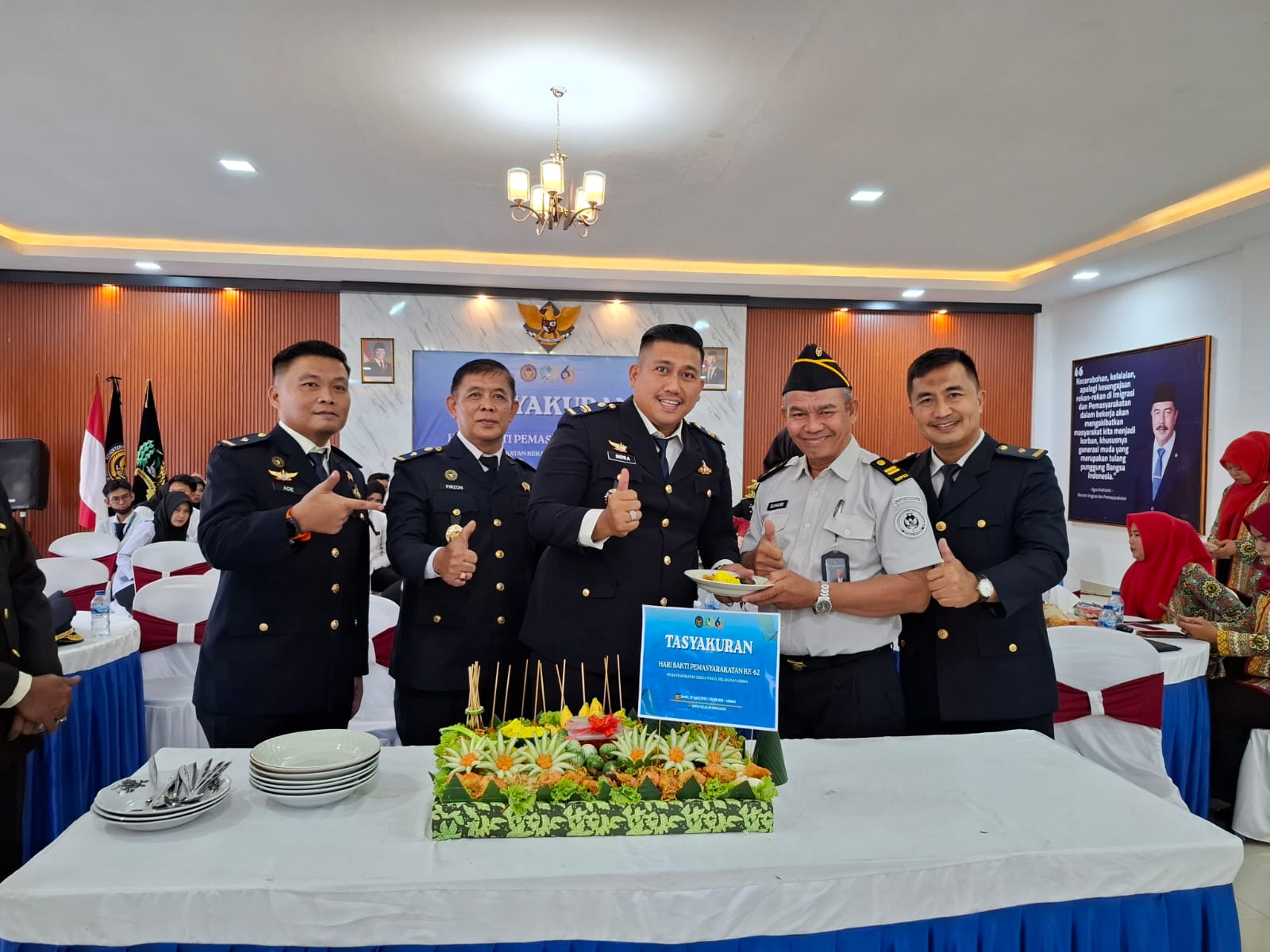 Sementara itu, Kepala Lapas Kelas IIA Banyuasin, Tetra Destorie, turut menghadiri kegiatan tasyakuran secara langsung sebagai bagian dari pelaksanaan terpusat, sebagai bentuk representasi dan dukungan terhadap rangkaian peringatan Hari Bakti Pemasyarakatan ke-62.