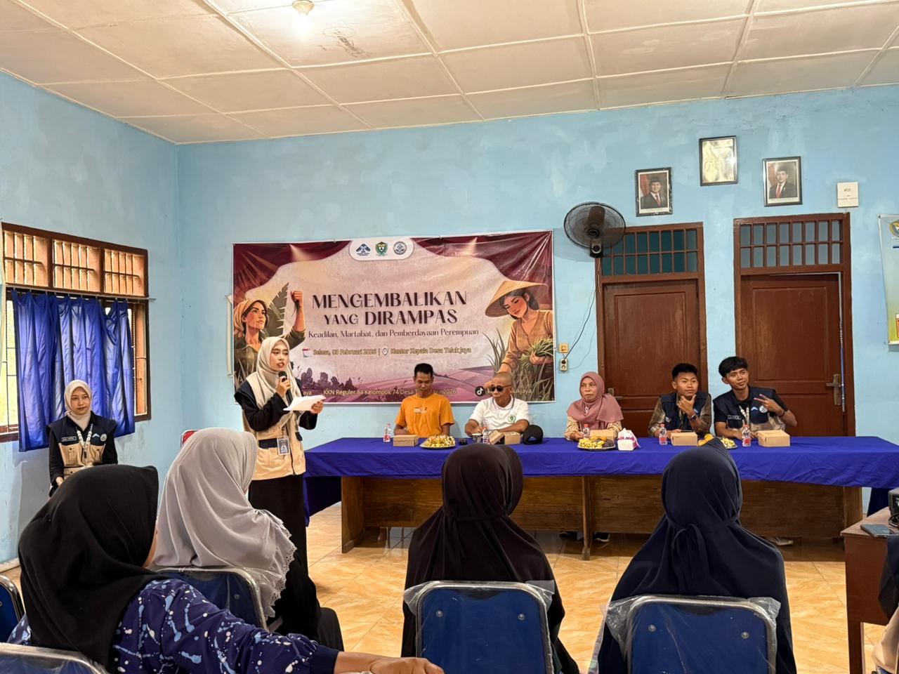 INDODAILY.CO, PALEMBANG — Isu keadilan dan pemberdayaan perempuan menjadi perhatian serius Mahasiswa Kuliah Kerja Nyata (KKN) Universitas Islam Negeri (UIN) Raden Fatah Palembang Angkatan ke-84 Kelompok 74. Melalui program unggulan bertajuk “Mengembalikan yang Dirampas: Keadilan, Martabat, dan Pemberdayaan Perempuan”, mahasiswa menghadirkan ruang refleksi dan dialog kritis bersama masyarakat Desa Teluk Jaya, Selasa (03/02/2026), bertempat di Kantor Kepala Desa Teluk Jaya.