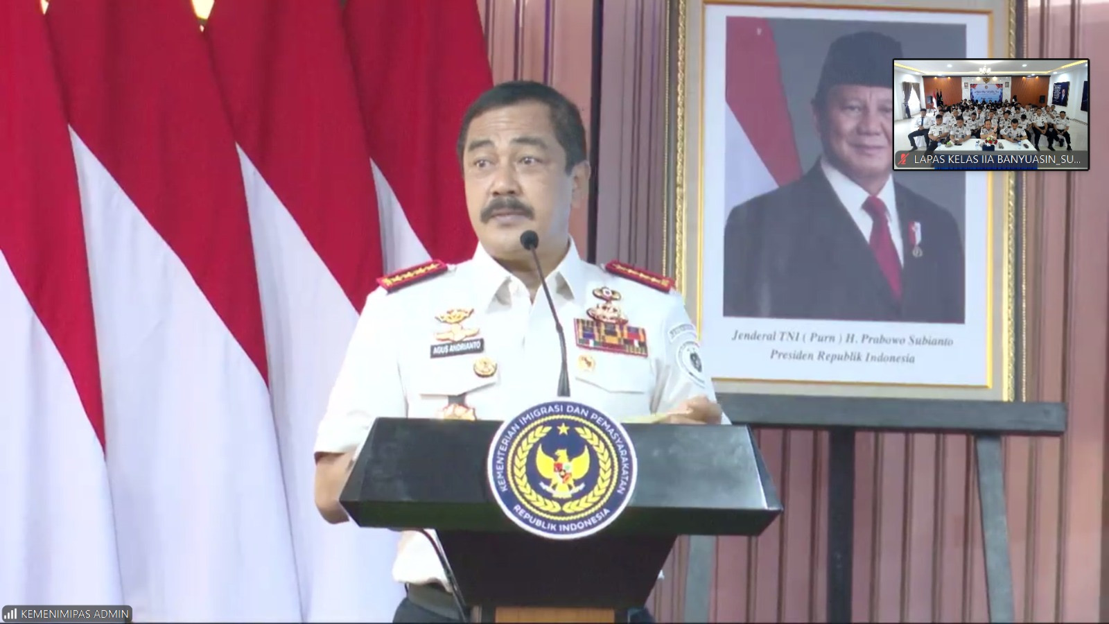 INDODAILY.CO, BANYUASIN- Menteri Imigrasi dan Pemasyarakatan Republik Indonesia, Agus Andrianto, memberikan penguatan dan arahan strategis kepada seluruh jajaran Kementerian Imigrasi dan Pemasyarakatan (Kemenimipas) pada awal tahun 2026 melalui kegiatan terpusat yang dilaksanakan secara virtual, Senin (5/1/2026).