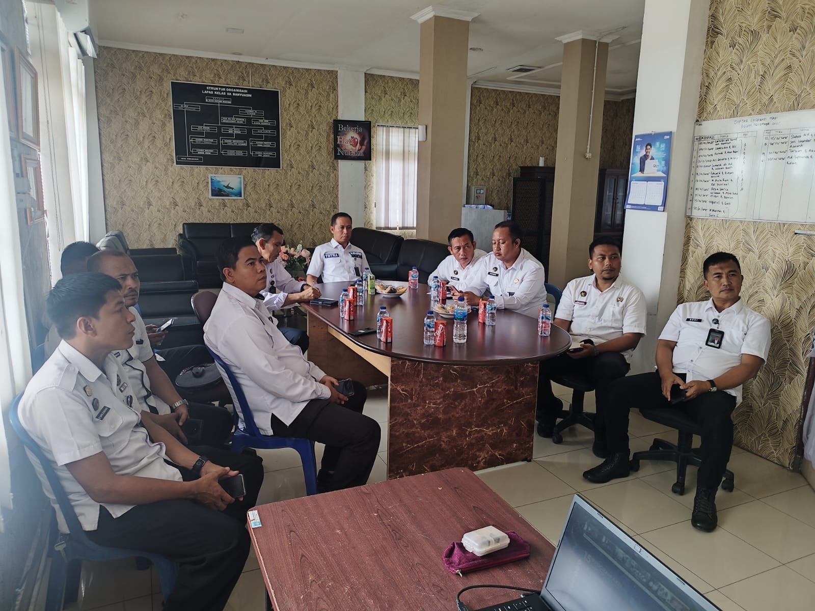 Kepala Lapas Kelas IIA Banyuasin Tetra Destorie beserta jajaran struktural mengikuti rapat dengan serius dan penuh perhatian. Dalam arahannya, Kanwil Ditjenpas Sumatera Selatan Erwedi Supriyatno menekankan pentingnya kesiapan sumber daya manusia, penguatan sistem pengawasan, serta optimalisasi koordinasi baik secara internal maupun eksternal guna menciptakan situasi yang aman, tertib, dan kondusif selama momentum Nataru.