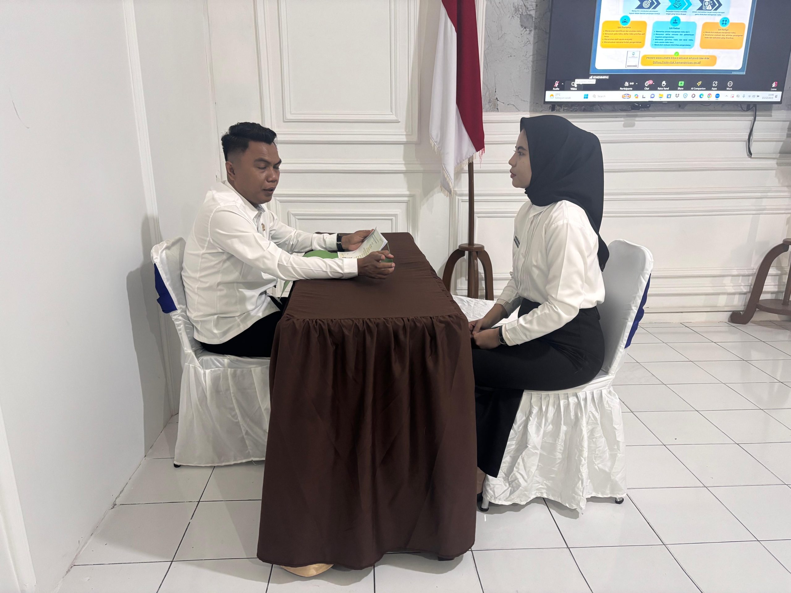 INDODAILY.CO, PALEMBANG — Lapas Perempuan Kelas IIA Palembang melaksanakan kegiatan wawancara peserta magang sebagai tahapan lanjutan setelah administrasi.