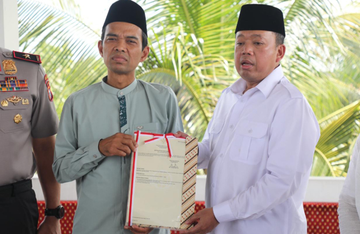 BANGKINANG – Menteri Agraria dan Tata Ruang/Kepala Badan Pertanahan Nasional (ATR/BPN), Nusron Wahid, mengapresiasi langkah Ustaz Abdul Somad (UAS) yang mengalihmediakan sertipikat tanahnya dari analog menjadi Sertipikat Elektronik.