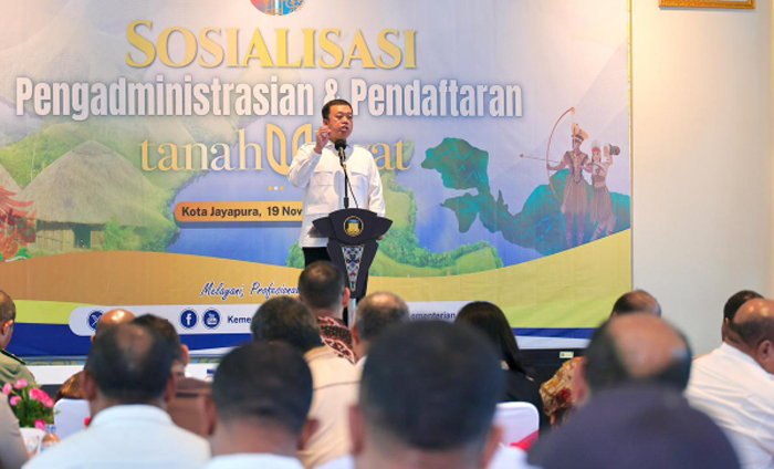 “Jangan sampai masyarakat adat hanya menjadi penonton dalam proses pertumbuhan ekonomi. Kita sudah melihat contoh di daerah lain, yakni tanahnya digunakan, hasilnya besar, tetapi masyarakat adat tidak mendapat apa-apa karena tidak ada pencatatan yang jelas. Jangan sampai itu terjadi di Papua,” tegas Menteri Nusron saat membuka kegiatan sosialisasi pengadministrasian dan pendaftaran tanah ulayat di Jayapura, Rabu (19/11/2025).