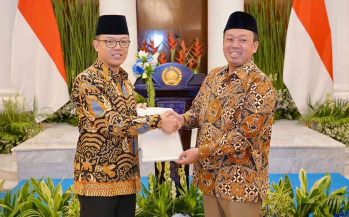 JAKARTA – Menteri Agraria dan Tata Ruang/Kepala Badan Pertanahan Nasional (ATR/BPN), Nusron Wahid, menyerahkan secara langsung Sertipikat Hak Pakai kepada Menteri Luar Negeri, Sugiono, Kamis (6/11/2025).