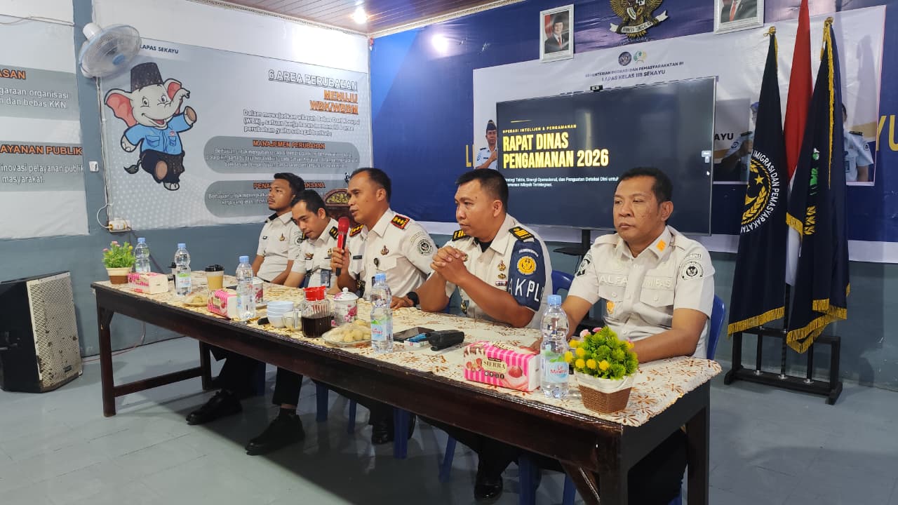 INDODAILY.CO, SEKAYU, —- Lapas Sekayu menggelar rapat dinas pengamanan pada Rabu (29/4/2026). Kegiatan ini bertujuan untuk memperkuat koordinasi, meningkatkan kedisiplinan, serta memastikan pelaksanaan tugas berjalan sesuai dengan ketentuan yang berlaku.
