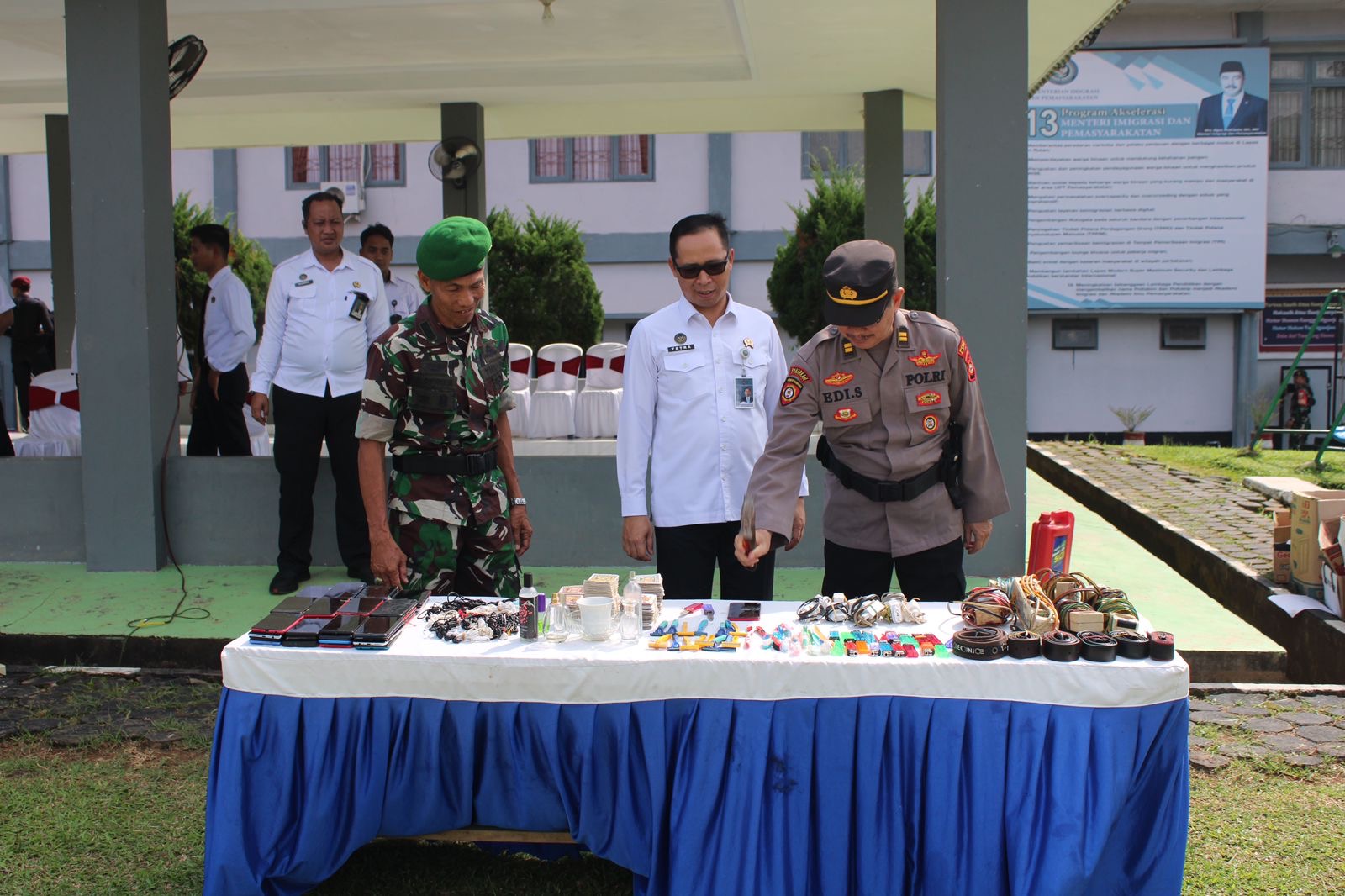Usai pelaksanaan apel, kegiatan dilanjutkan dengan pemusnahan barang bukti hasil razia di dalam lapas. Barang-barang terlarang tersebut dimusnahkan dengan cara dihancurkan dan dibakar sebagai bentuk komitmen Lapas Kelas IIA Banyuasin dalam memberantas peredaran barang terlarang dan menjaga ketertiban di lingkungan pemasyarakatan.