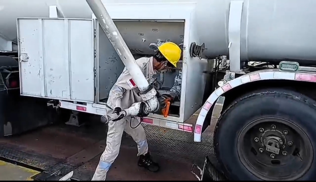 Mobil skid LPG tank ini membawa sejumlah LPG sebagai bantuan untuk masyarakat terdampak di wilayah tersebut.