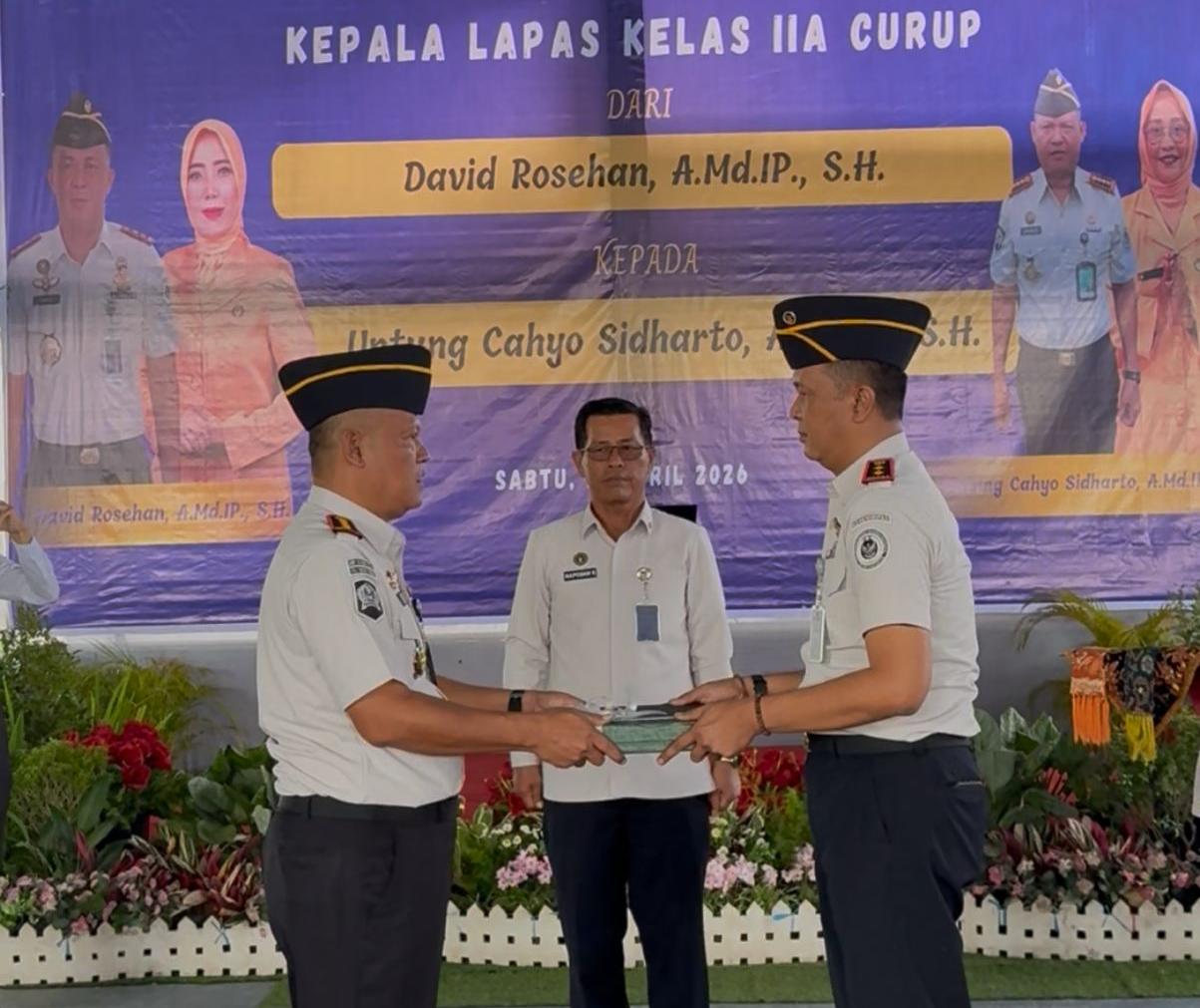INDODAILY.CO, CURUP –– Lembaga Pemasyarakatan Kelas IIA Curup menggelar kegiatan pisah sambut dan serah terima jabatan (sertijab) Kepala Lapas dari pejabat lama, David Rosehan, A.Md.IP., S.H., kepada pejabat baru, Untung Cahyo Sidharto, A.Md.IP., S.H. Kegiatan berlangsung khidmat dan penuh kehangatan, dipimpin langsung