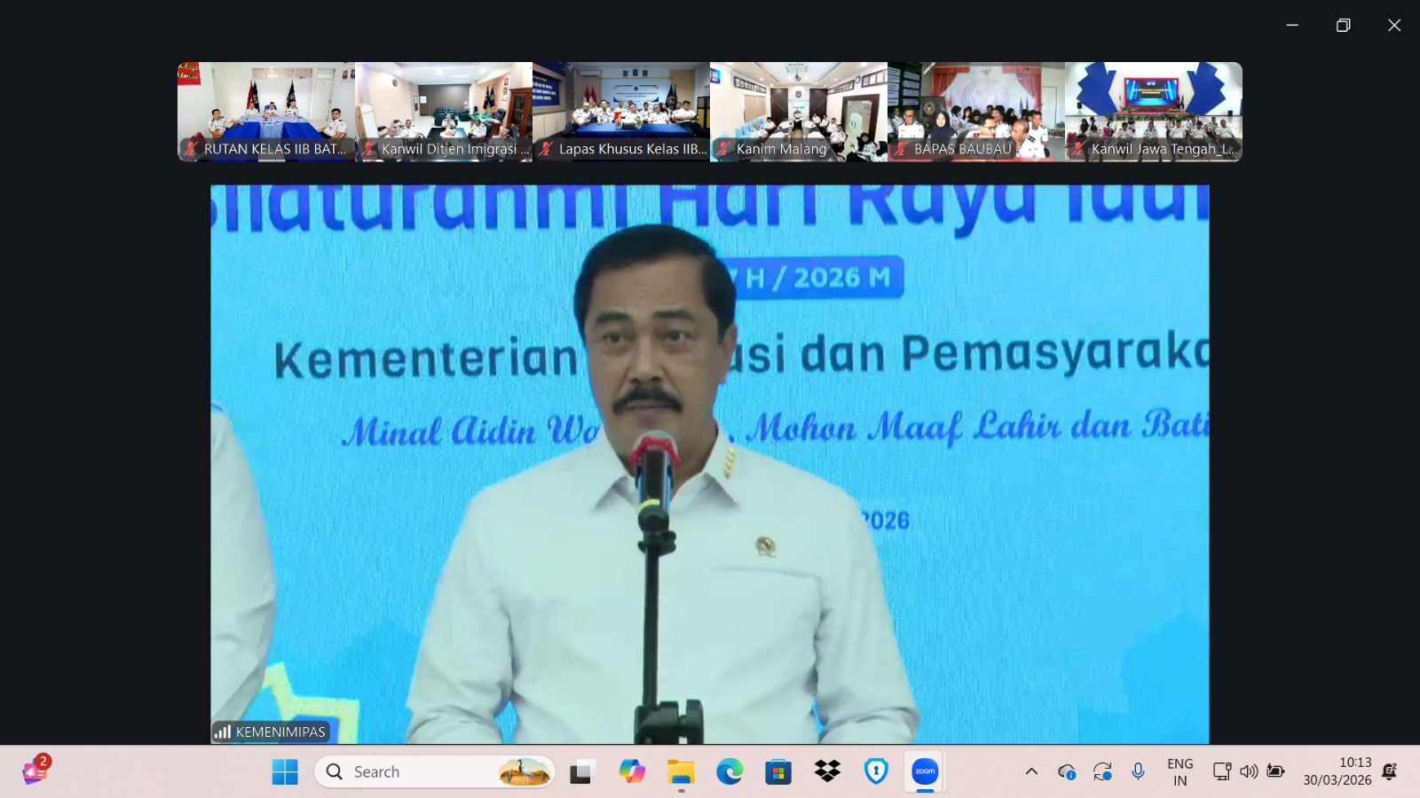 Rutan Baturaja mengikuti agenda Halal Bihalal di lingkungan Kementerian Imigrasi dan Pemasyarakatan secara daring melalui Zoom Meeting. pada Senin (30/03/2026).