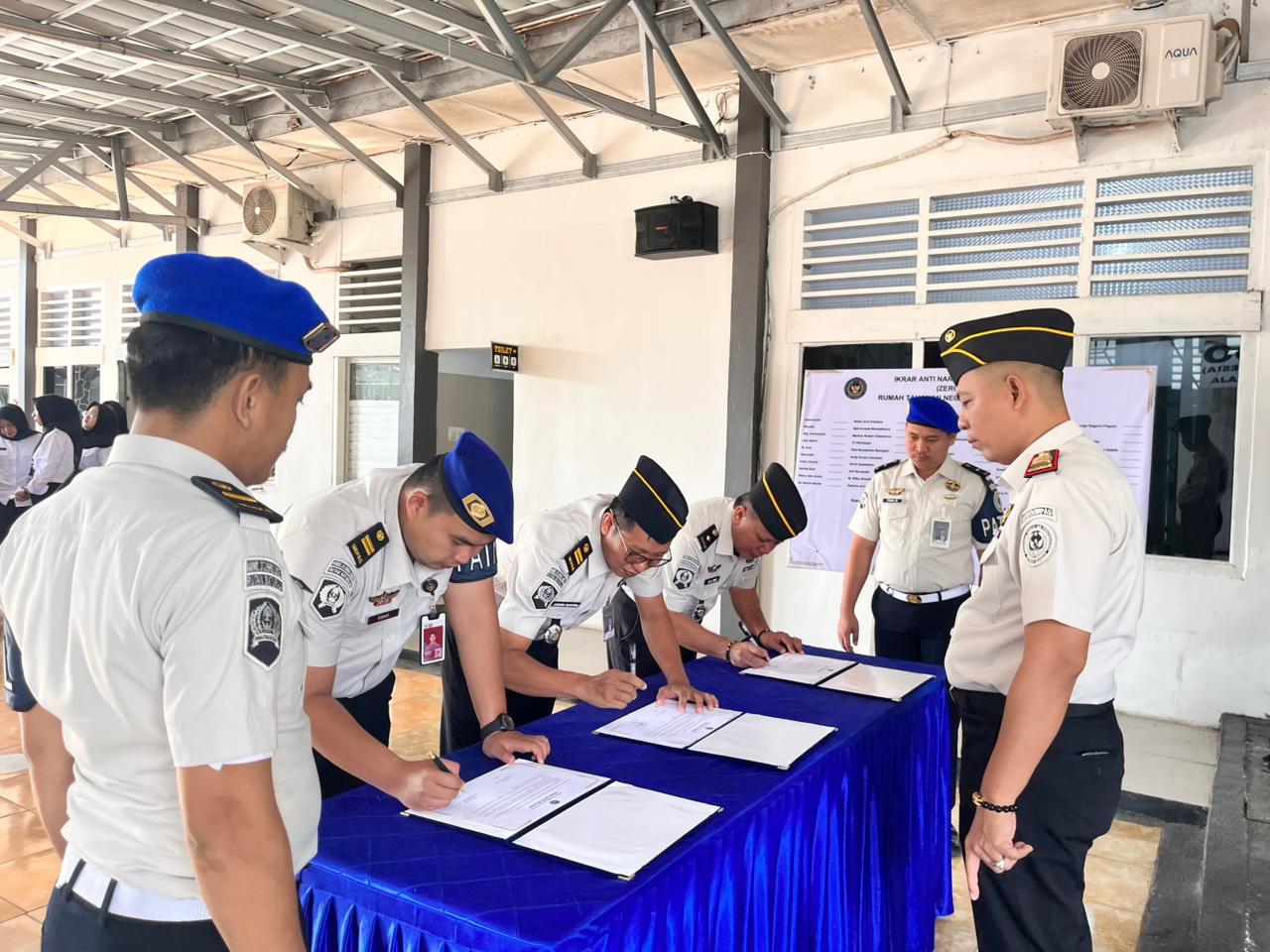 Rutan Baturaja Laksanakan Giat Ikrar Serentak dan Penandatanganan Komitmen Anti Narkoba dan Handphone