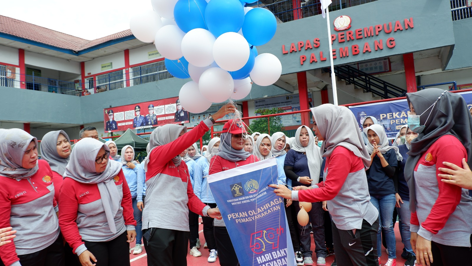 Diwaktu bersamaan Kalapas Perempuan Palembang dan jajaran menerbangkan balon udara sebagai tanda di bukanya kegiatan pekan olahraga di Lapas Perempuan Palembang dan dilanjutkan dengan pertandingan bola volly antar Petugas dan Wargabinaan.