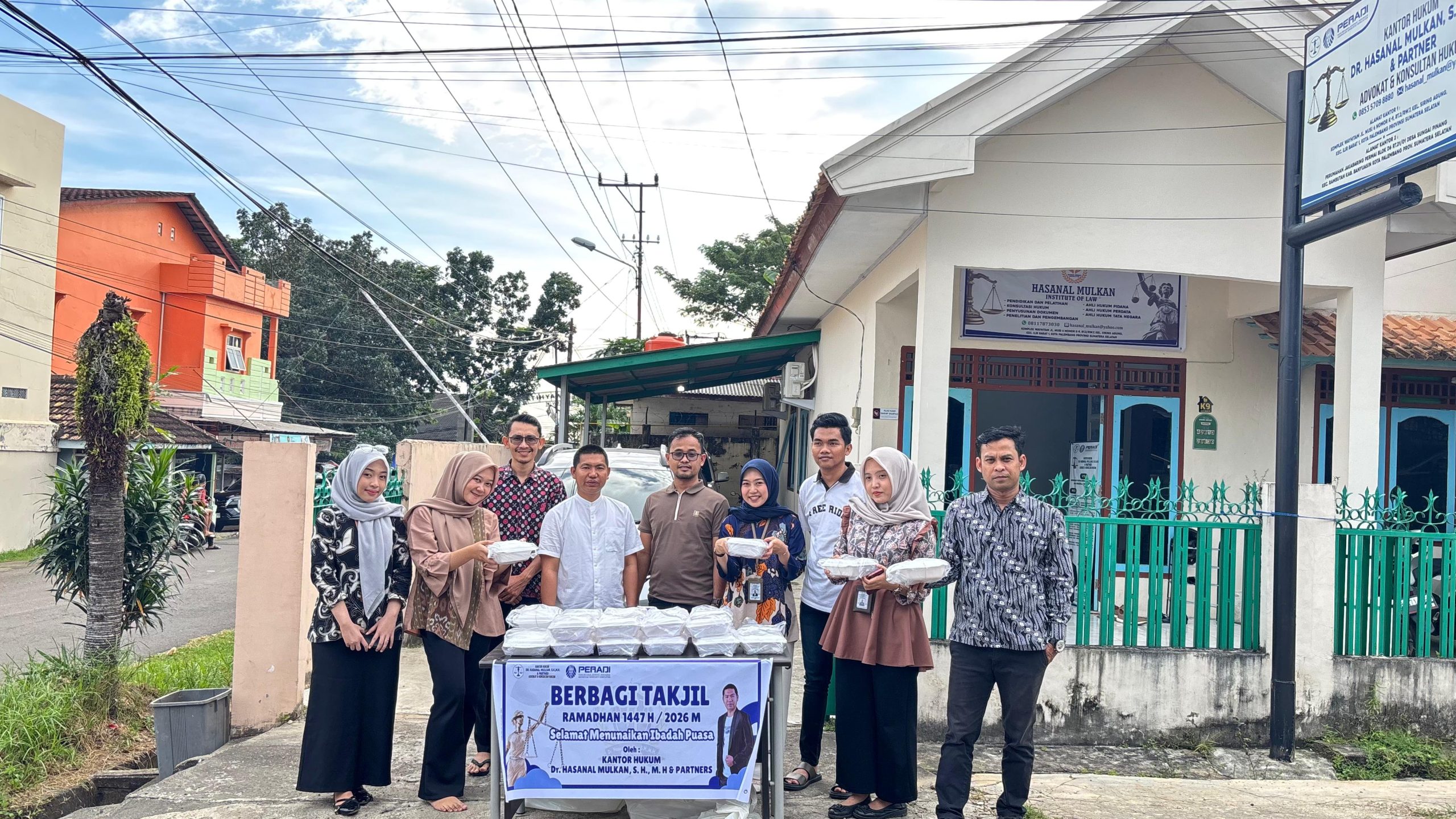 INDODAILY.CO, PALEMBANG – Dalam rangka menyambut bulan suci Ramadan 1447 Hijriah/2026 Masehi, Kantor Hukum Dr. Hasanal Mulkan, S.H., M.H. & Partners menggelar kegiatan berbagi takjil kepada masyarakat, Jumat (27/2/2026).