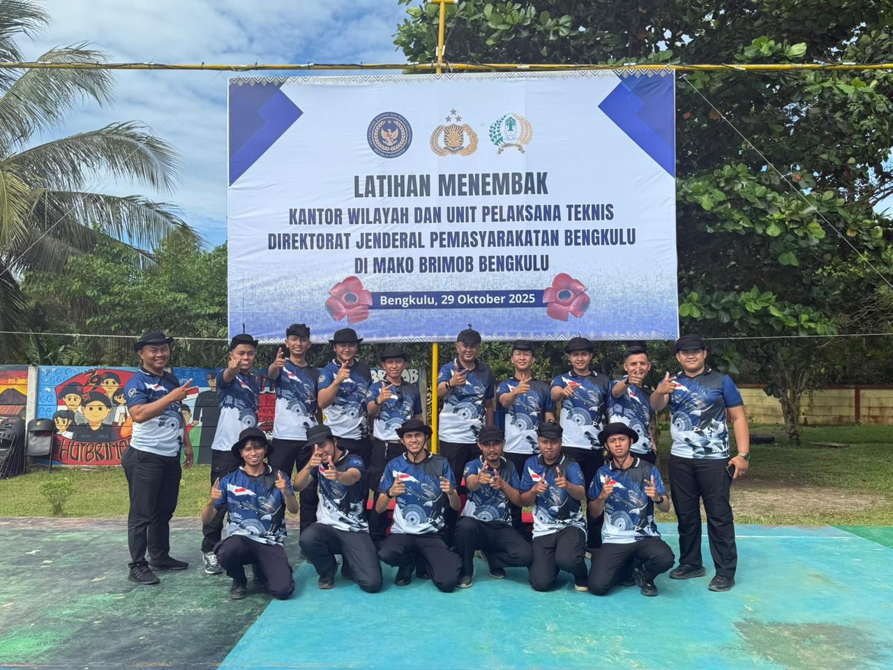 INDODAILY.CO, BENGKULU — Kepala Lembaga Pemasyarakatan (Kalapas) Kelas IIA Curup, David Rosehan, beserta jajaran mengikuti kegiatan Fisik Mental dan Disiplin melalui Latihan Menembak, yang diselenggarakan oleh Kantor Wilayah Direktorat Jenderal Pemasyarakatan (Kanwil Ditjenpas) Bengkulu di Markas Komando Brimob Polda Bengkulu, Rabu (29/10/2025).