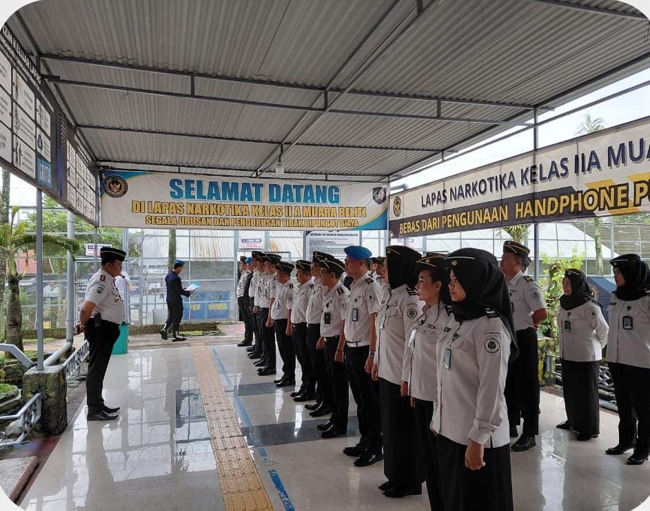 Pengarahan tersebut dipimpin langsung oleh Kepala Lapas Narkotika Kelas IIA Muara Beliti, Herdianto, yang menekankan pentingnya kepatuhan terhadap peraturan, kode etik, serta tanggung jawab sebagai Aparatur Sipil Negara (ASN) dalam melaksanakan tugas dan fungsi pemasyarakatan.